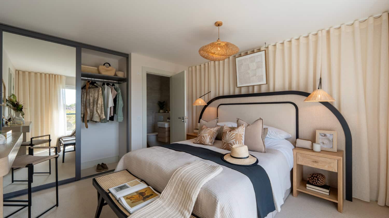 The primary bedroom can be found on the second floor, with a separate dressing room and en-suite with double shower.